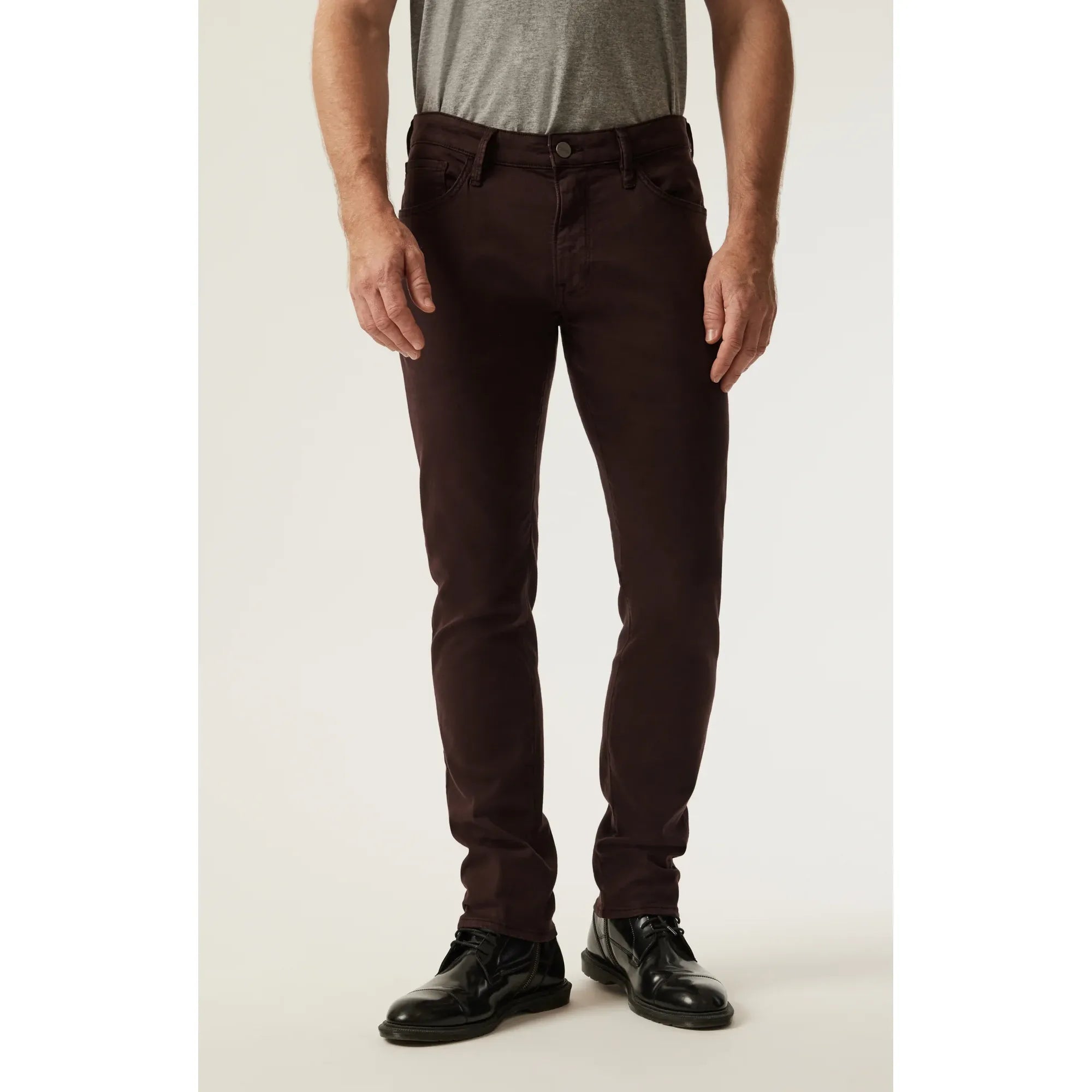 Brown Refined Twill Fabric: The material is primarily cotton with a touch of elastane, giving you a soft, lightly textured twill with stretch for comfort.