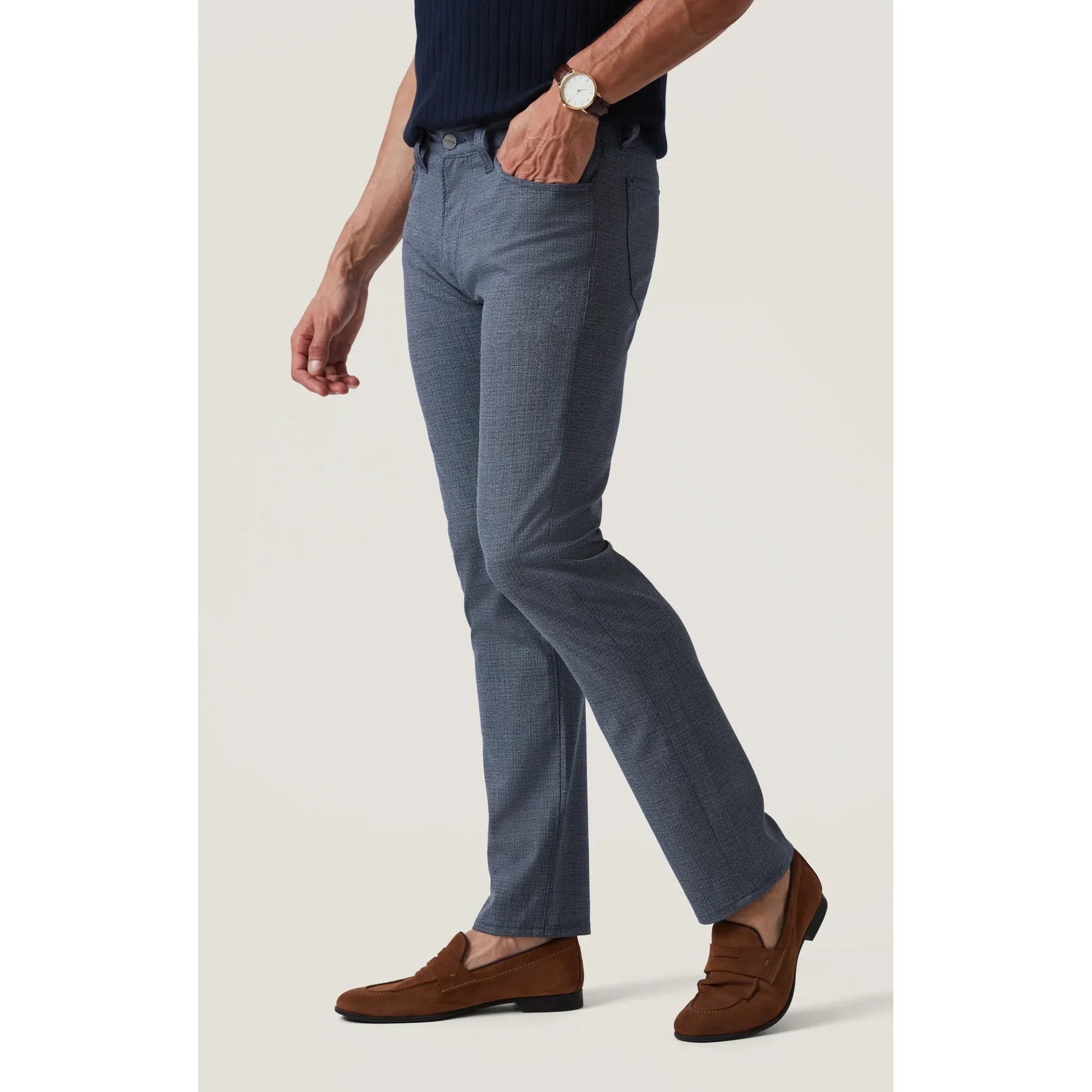 Textured Look: There’s a subtle diagonal textured pattern or cross-hatch effect in the twill that adds visual depth and a slightly elevated, refined look compared with plain cotton pants.