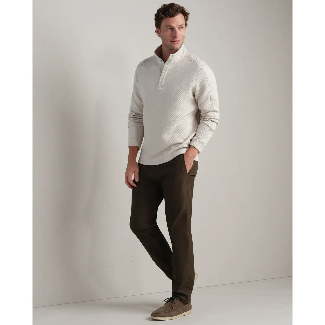 The Weekender Pullover builds on the legacy of the Gramercy Pullover, offering a more refined, adaptive design. Crafted with lightweight quilted cotton and enhanced with ventilation, the Weekender Pullover provides optimal versatility and balance for everything from travel days to relaxed moments.