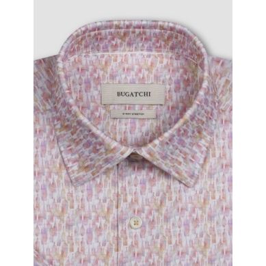 Designed with a classic point collar, genuine mother-of-pearl buttons, and a curved hem that works equally well tucked or untucked, this shirt blends thoughtful technical details with effortless style. The geometric pattern adds visual interest while maintaining a refined, versatile look that pairs seamlessly with both casual and elevated outfits.